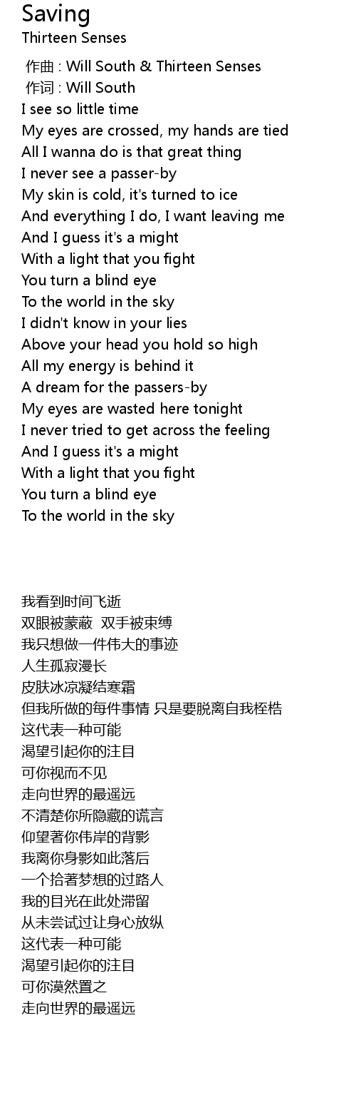 | [00:00.00] | 作曲 : Will South & Thirteen Senses |