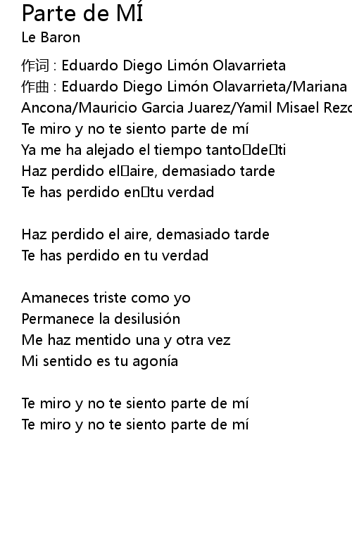 | 作词 : Eduardo Diego Limón Olavarrieta | |