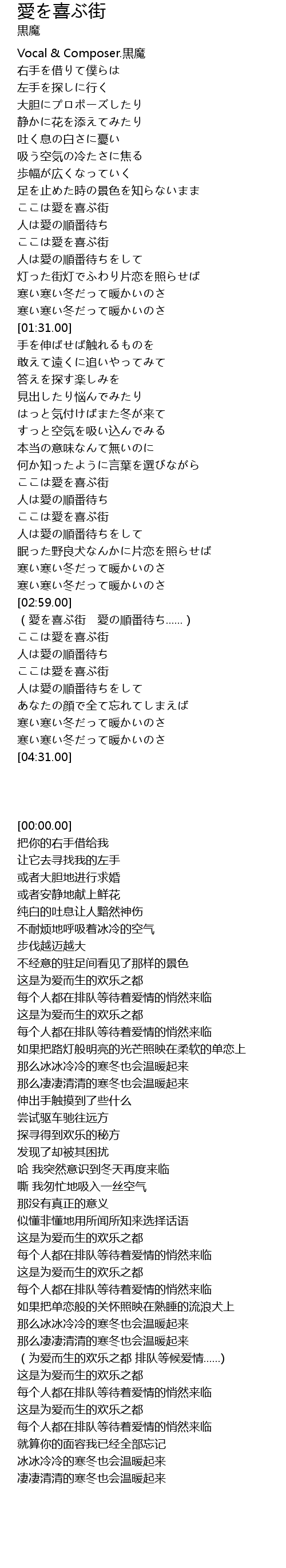 | [00:00.00] | Vocal & Composer.黒魔 |
