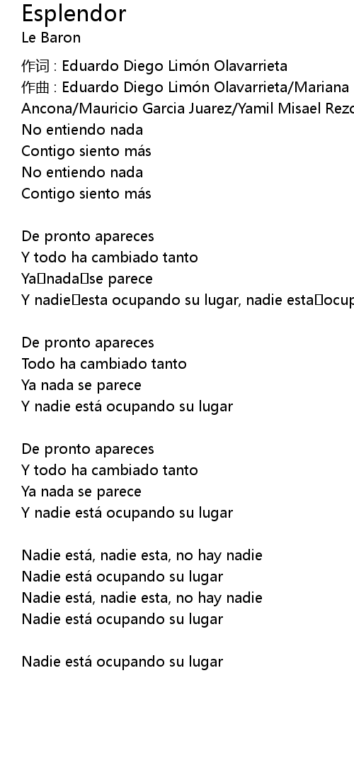 | 作词 : Eduardo Diego Limón Olavarrieta | |