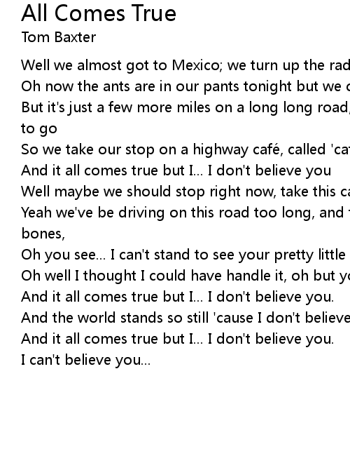 | And it all comes true but I... I don't believe you | |