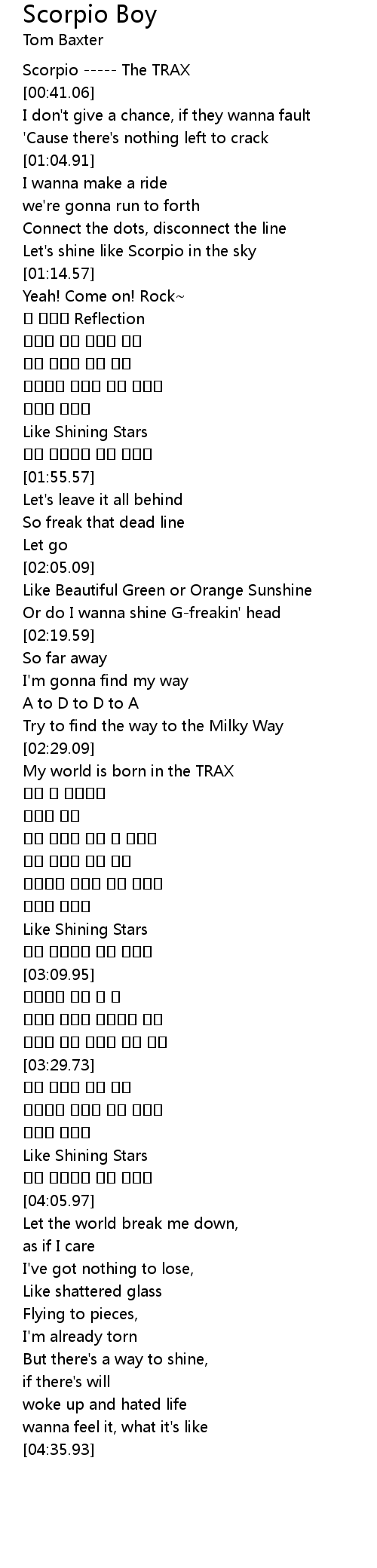 | [01:12.03] | Let' s shine like Scorpio in the sky |