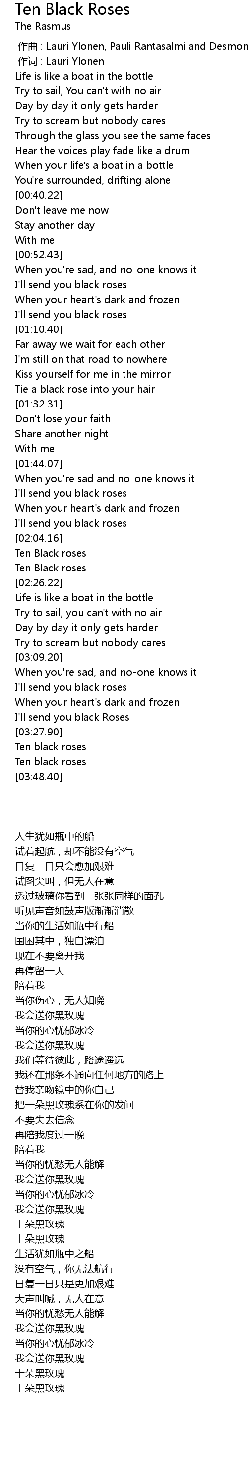 | [00:00.00] | 作曲 : Lauri Ylonen, Pauli Rantasalmi and Desmond Child |