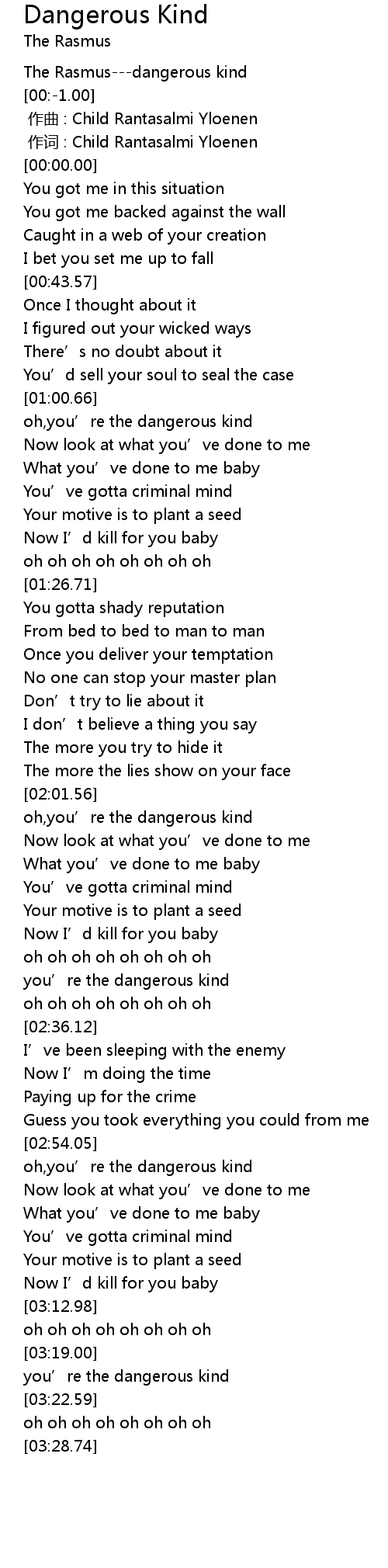 | [00:-2.00] | The Rasmus---dangerous kind |