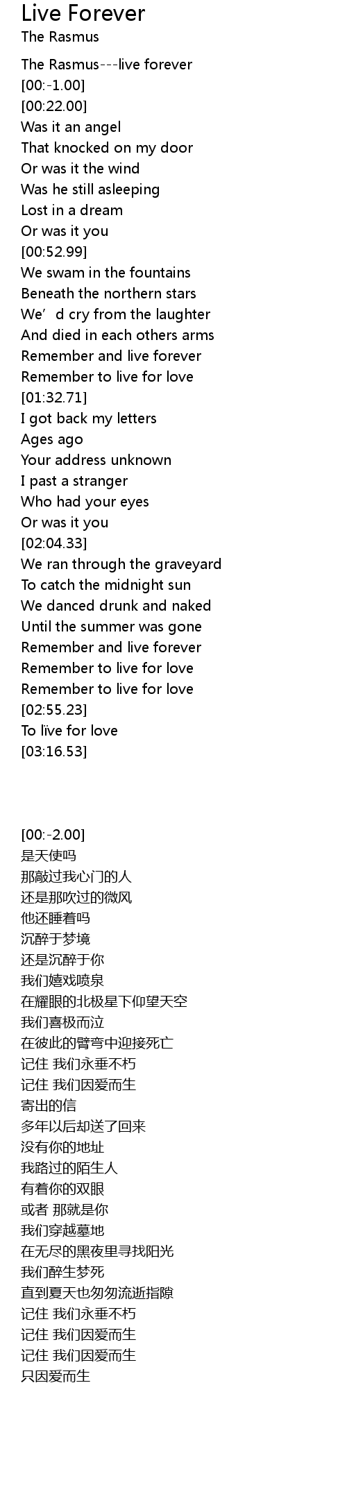 | [02:24.47] | Remember and live forever |