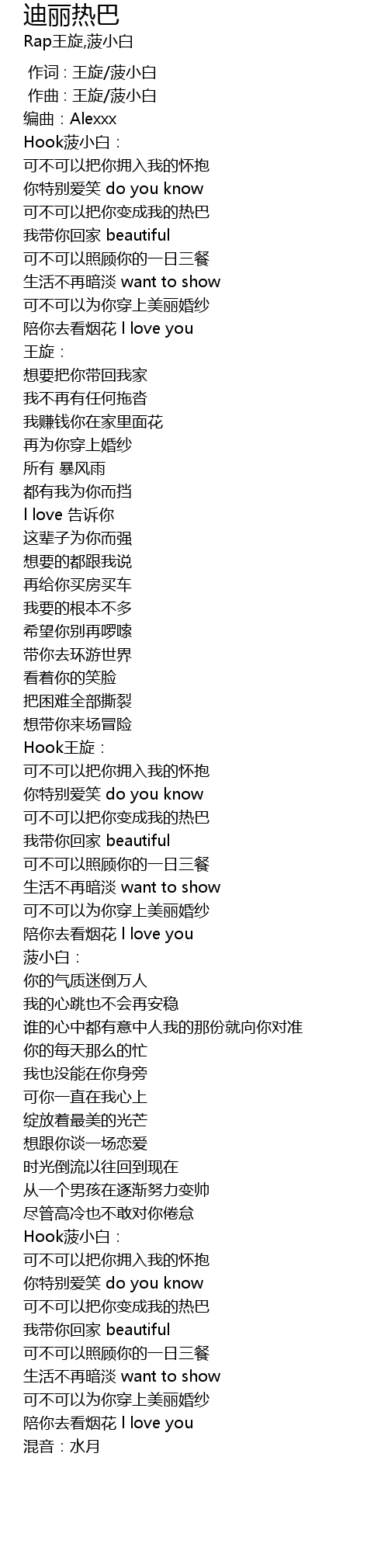 | [00:00.00] | 作词 : 王旋/菠小白 |