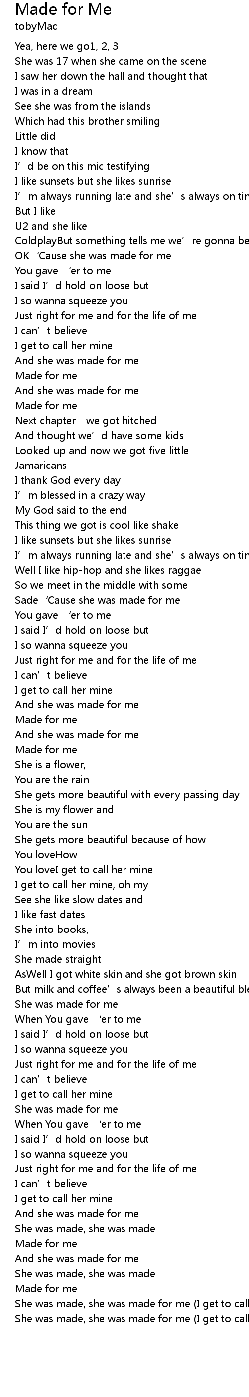 | OK' Cause she was made for me | |