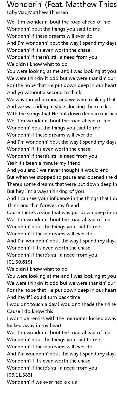 | [00:53.791] | Wonderin' bout the things you said to me |