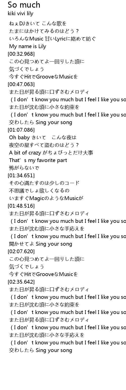 | [02:56.631] | (I don’t know you much but I feel I like you so much) |