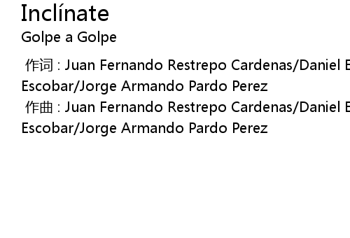 | [00:00.00-1] | 作曲 : Juan Fernando Restrepo Cardenas/Daniel Esteban Calle Escobar/Jorge Armando Pardo Perez |