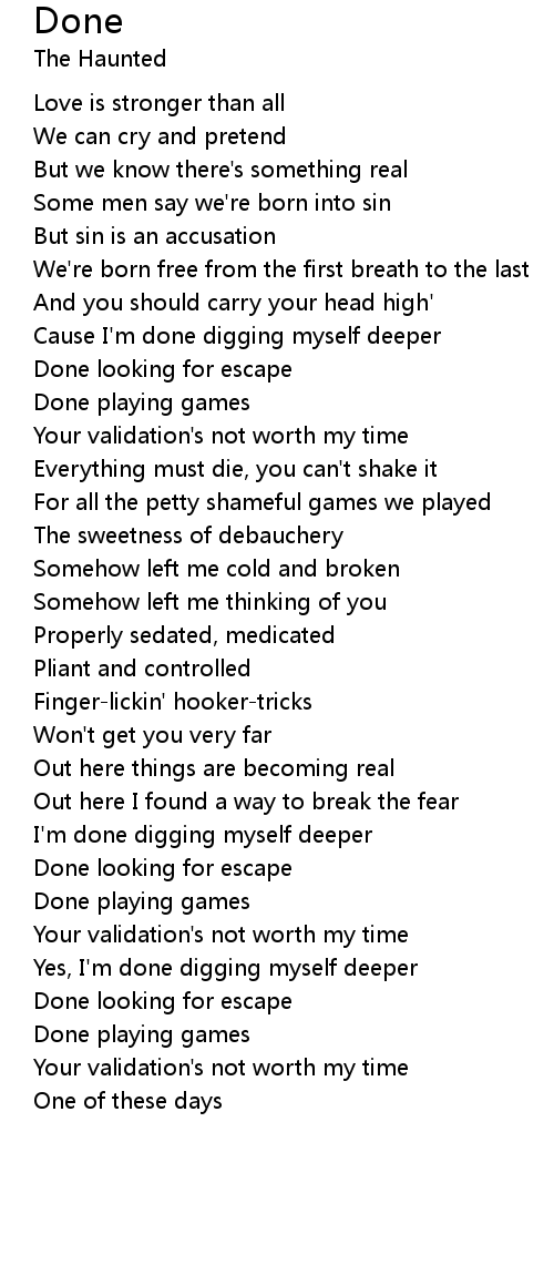Cause I'm done digging myself deeper |
