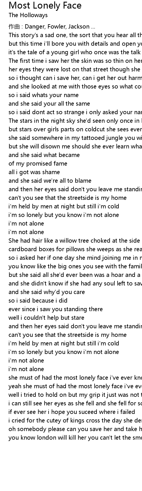 | yeah she must of had the most lonely face i' ve ever known | |