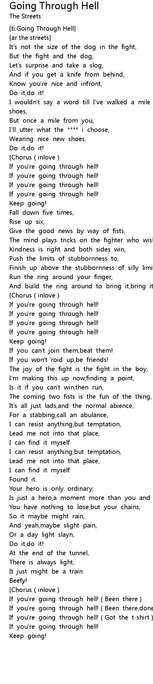 | [02:46.556] | If you're going through hell!(Been there,done that) |