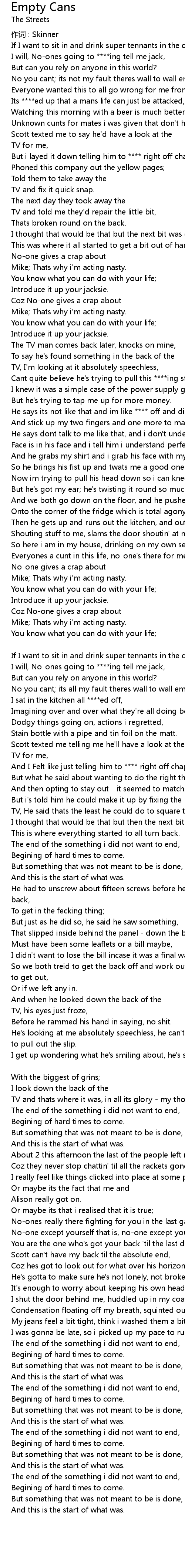 | Shouting stuff to me, slams the door shoutin' at me. | |