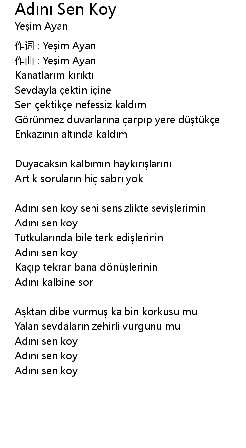 | Ad n sen koy seni sensizlikte sevi lerimin | |