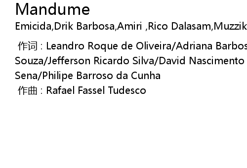 | [00:00.00-1] | 作词 : Leandro Roque de Oliveira/Adriana Barbosa de Souza/Jefferson Ricardo Silva/David Nascimento dos Santos/Rafael Rodrigues de Sena/Philipe Barroso da Cunha |