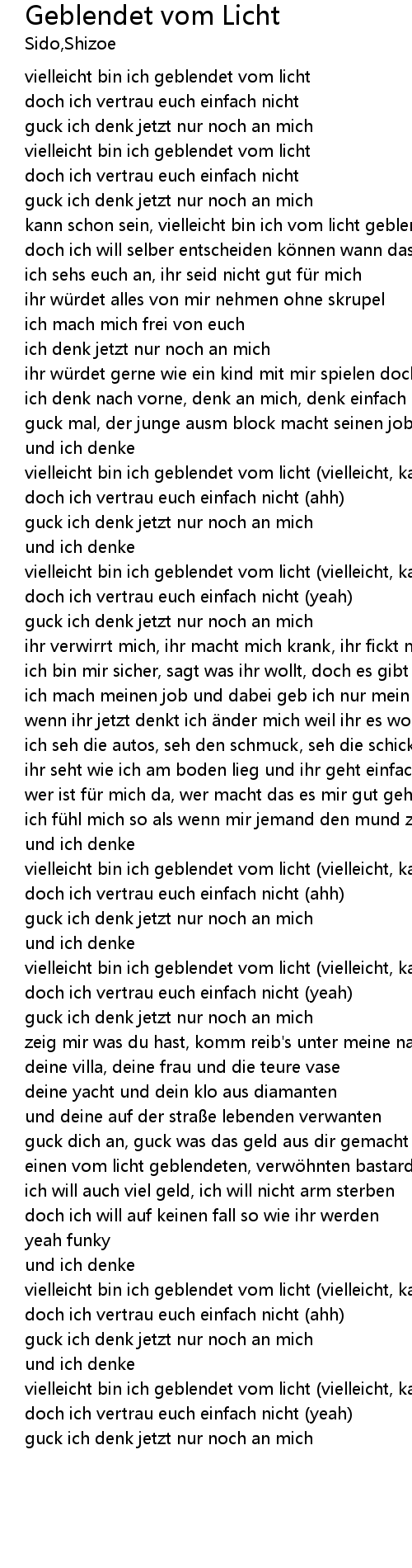 | vielleicht bin ich geblendet vom licht vielleicht, kann schon sein, he | |