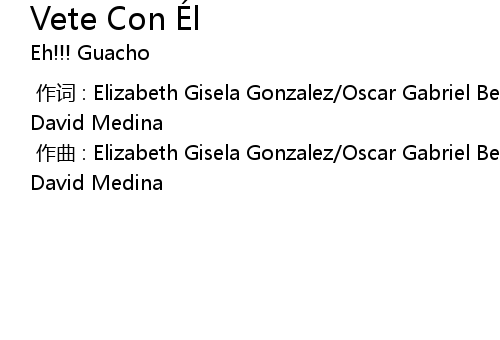 | [00:00.00-1] | 作词 : Elizabeth Gisela Gonzalez/Oscar Gabriel Belondi/Alfredo David Medina |
