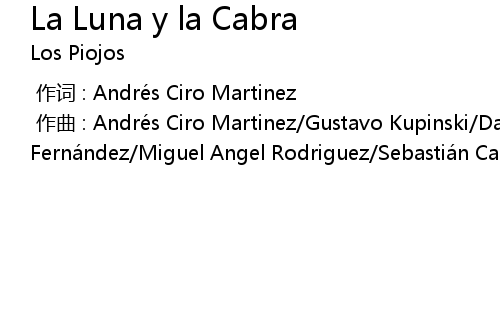| [00:00.00-1] | zuo qu : Andre s Ciro Martinez Gustavo Kupinski Daniel Ferna ndez Miguel Angel Rodriguez Sebastia n Cardero |