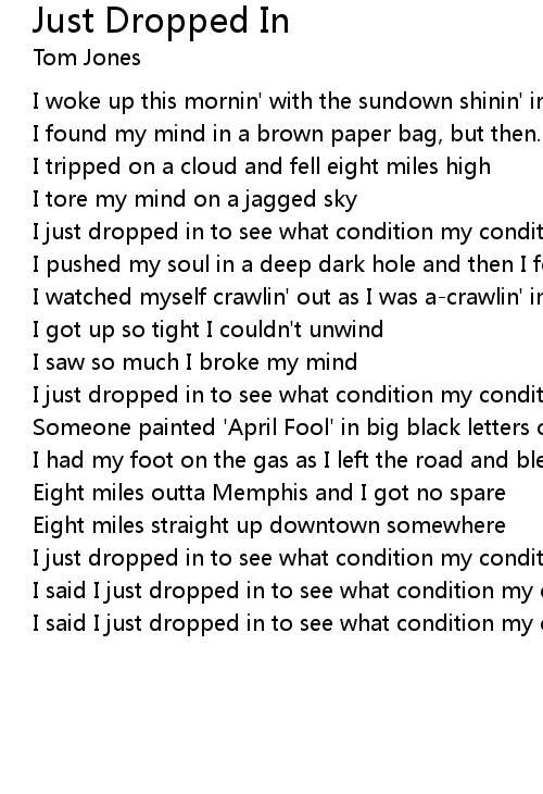 I said I just dropped in to see what condition my condition was in |