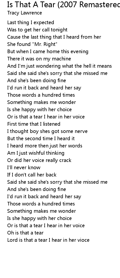 Or is that a tear I hear in her voice |