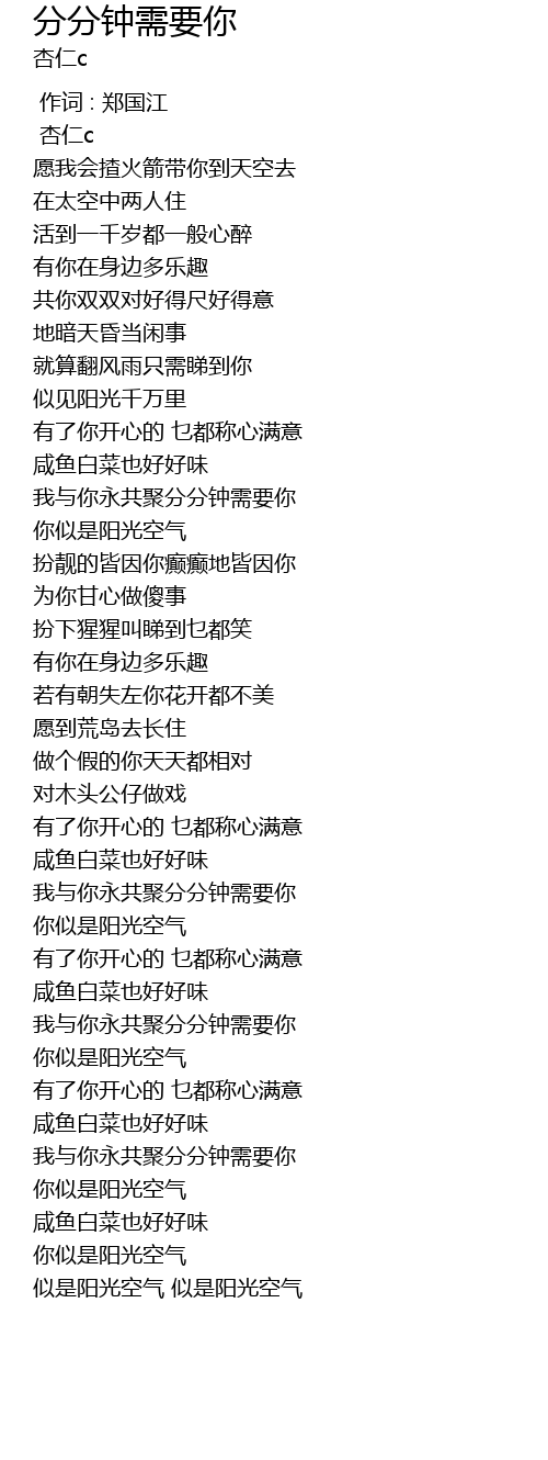 | [02:27.59] | 我与你永共聚分分钟需要你 |