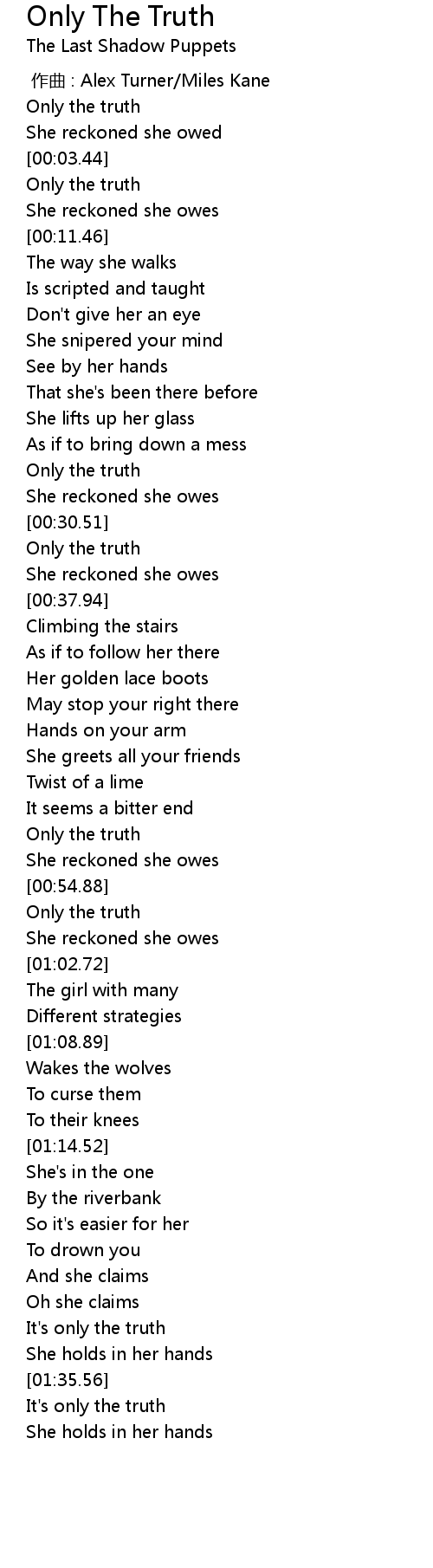 | [00:58.15] | Only the truth |