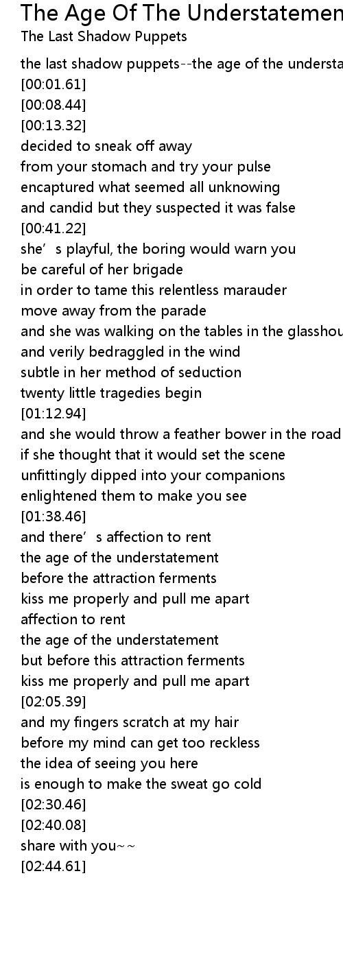 | [00:00.00] | the last shadow puppets--the age of the understatement |