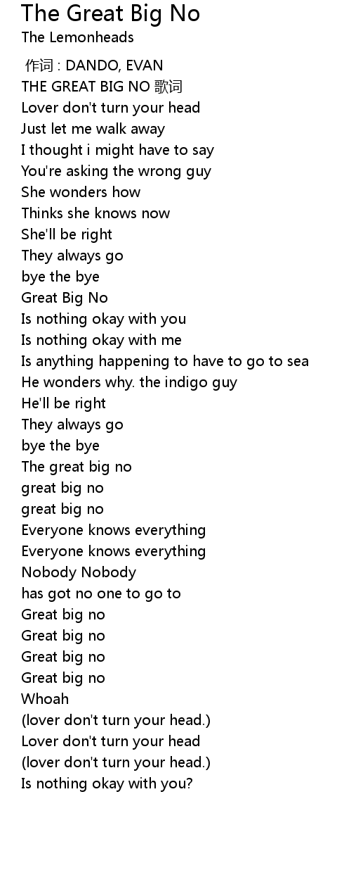 | [00:00.09] | THE GREAT BIG NO 歌词 |