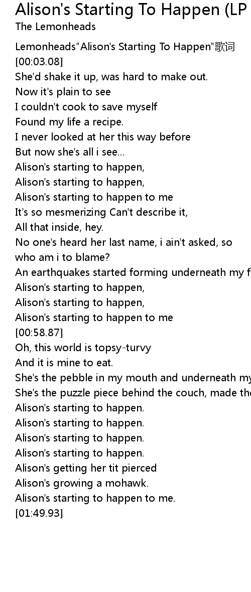 | [00:01.61] | Lemonheads" Alison' s Starting To Happen" gē cí |