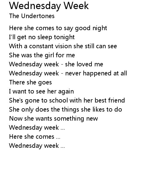 | Song | Wednesday Week |