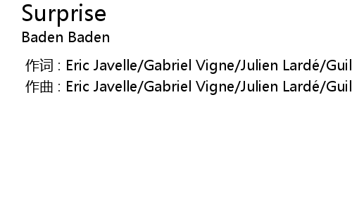 | [00:00.00-1] | zuò qǔ : Eric Javelle Gabriel Vigne Julien Lardé Guillaume Georget |