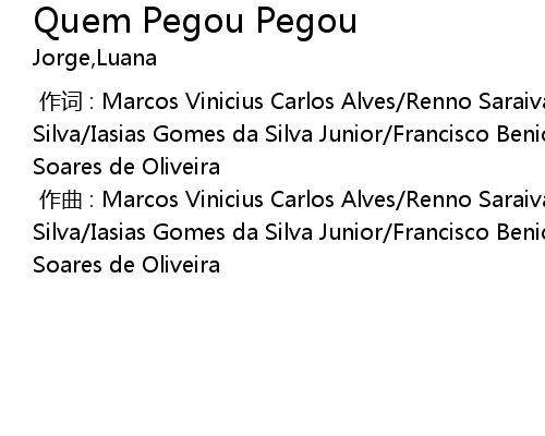 | [00:00.00-1] | zuo qu : Marcos Vinicius Carlos Alves Renno Saraiva Macedo e Silva Iasias Gomes da Silva Junior Francisco Benicio de Sa Neto Marcos Vinicius Soares de Oliveira |