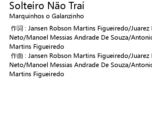 | [00:00.00-1] | zuò cí : Jansen Robson Martins Figueiredo Juarez Pires de Moura Neto Manoel Messias Andrade De Souza Antonio Hiago Nobre Peixoto John Kennedy Martins Figueiredo |