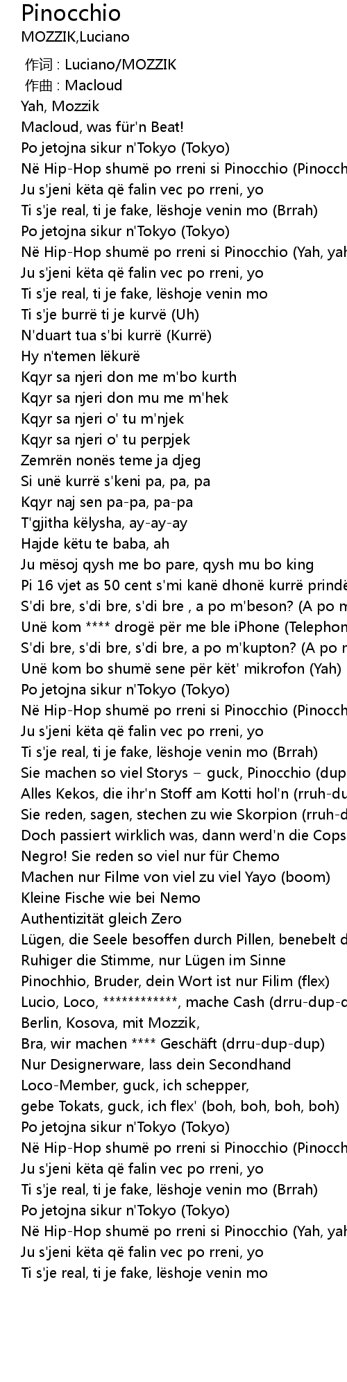 | [02:13.72] | N HipHop shum po rreni si Pinocchio Pinocchio |
