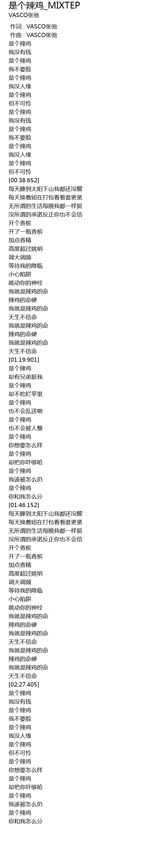 | [00:46.400] | 无所谓的生活每晚我都一样挺 |