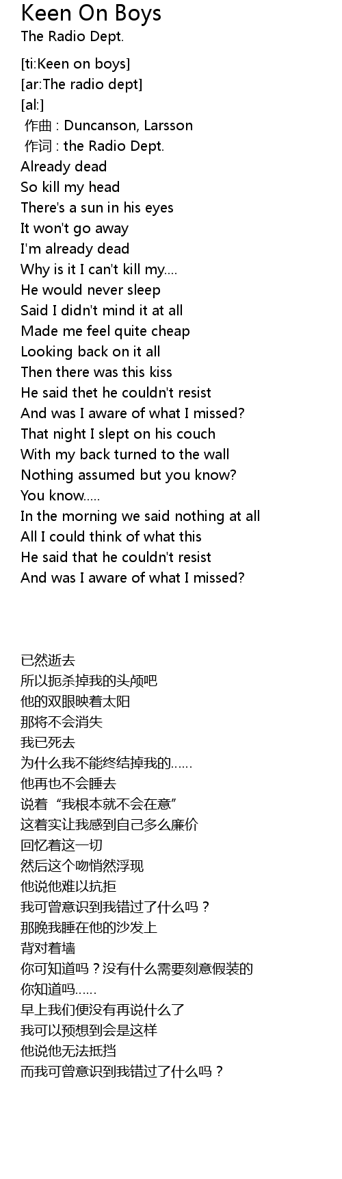 | [00:01.00] | zuò cí : the Radio Dept. |