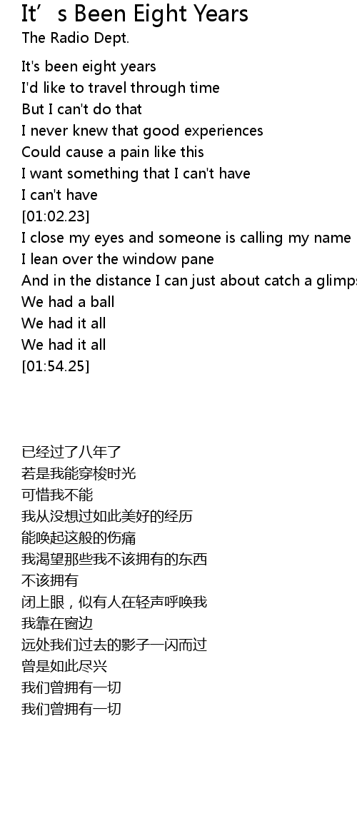 It’s Been Eight Years It' s Been Eight Years Lyrics