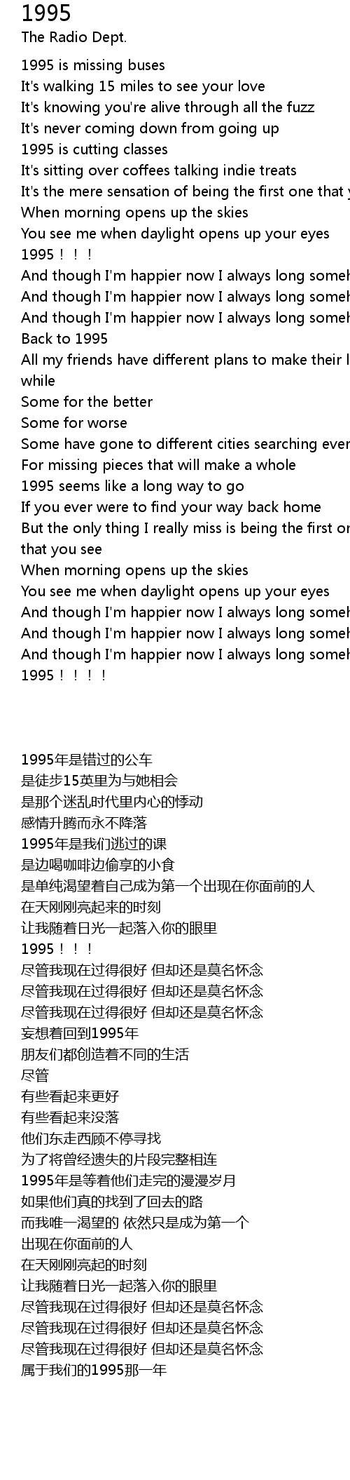 | [01:00.94] | And though I' m happier now I always long somehow |