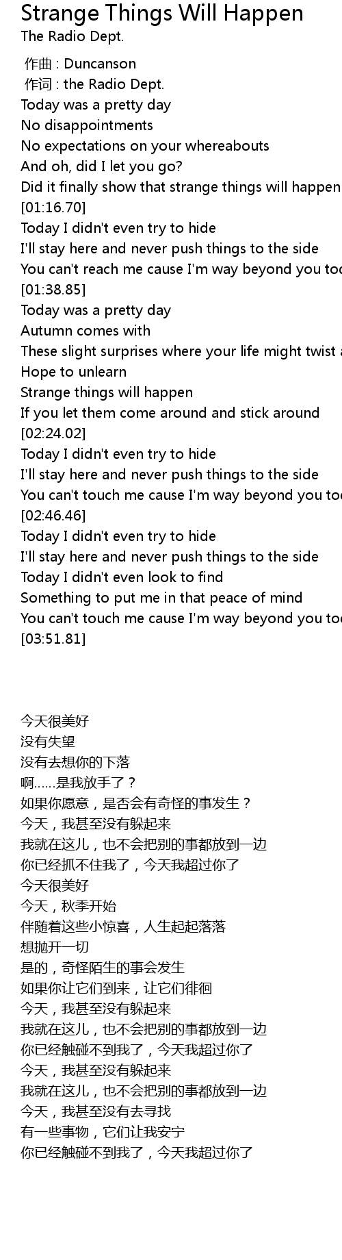 | [01:04.85] | Did it finally show that strange things will happen if you let them? |