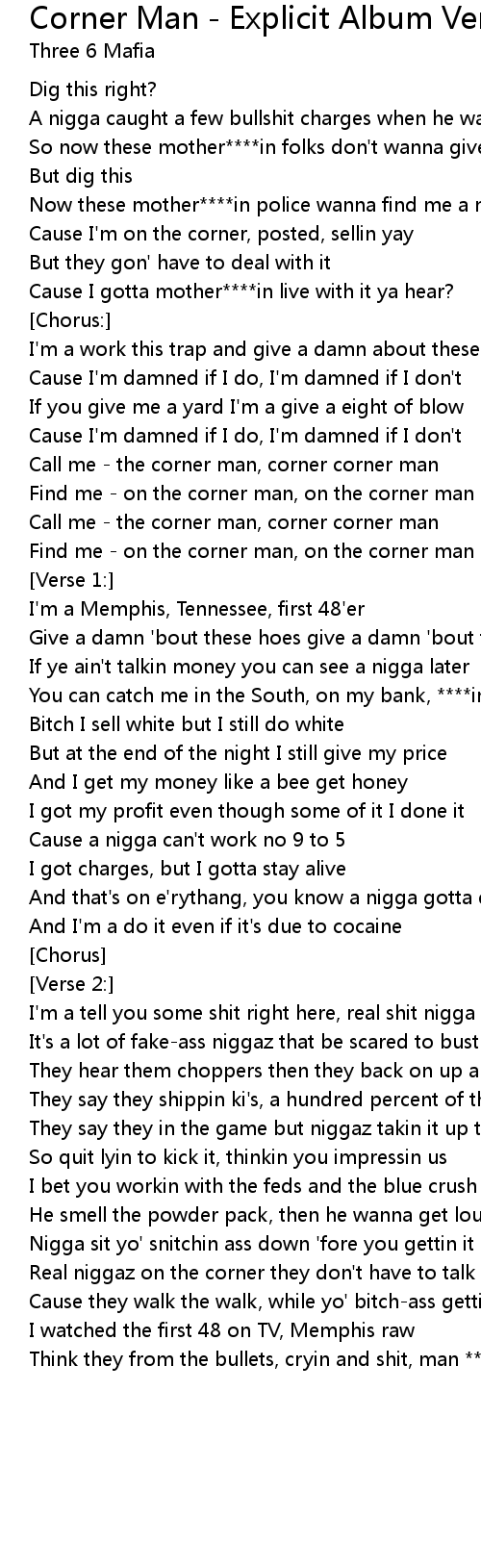 Call me - the corner man, corner corner man |