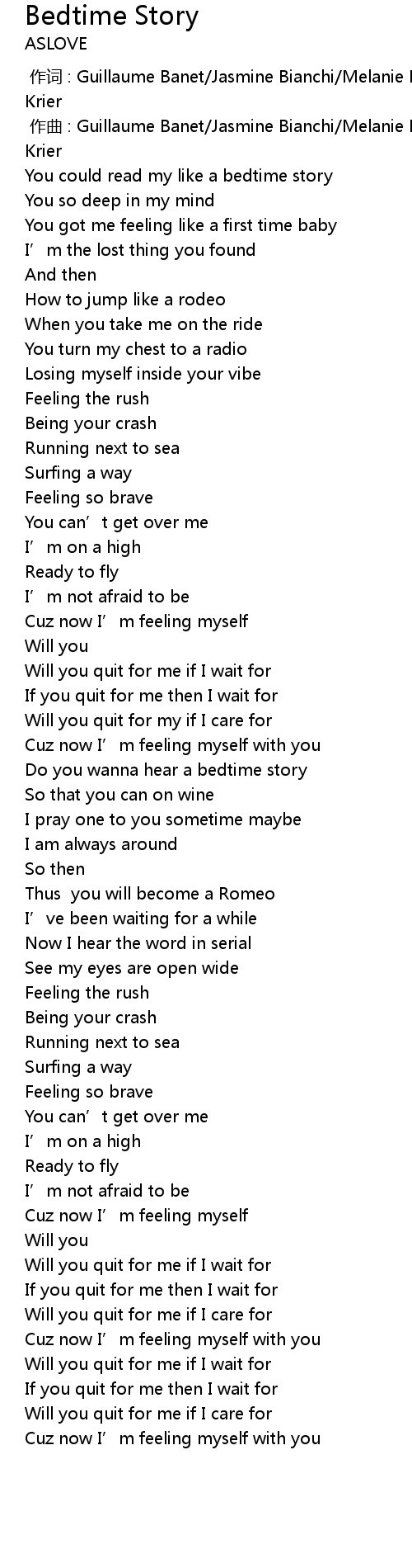 | [01:36.00] | Do you wanna hear a bedtime story |