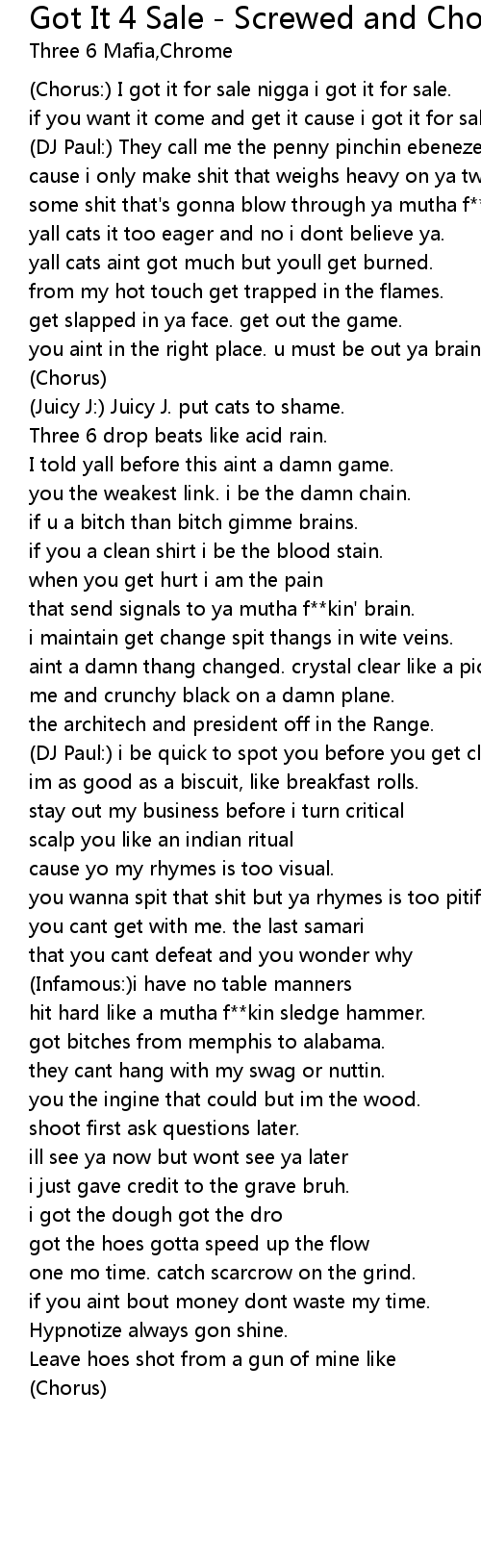 Got It 4 Sale - Screwed and Chopped Lyrics