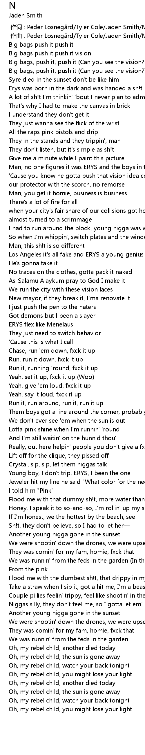 | [00:00.00] | 作词 : Peder Losnegård/Tyler Cole/Jaden Smith/Mateo Arias |