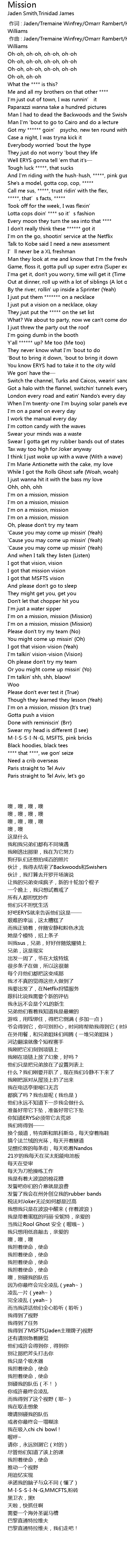 | [03:32.57] | I'm on a mission, mission (Mission) |