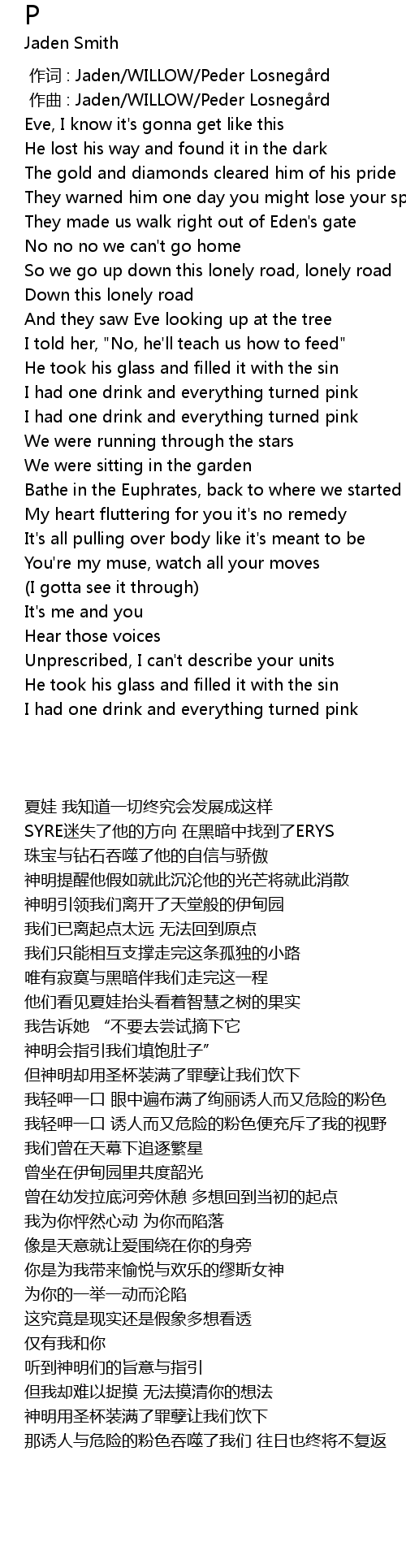 | [00:00.00] | 作词 : Jaden/WILLOW/Peder Losnegård |
