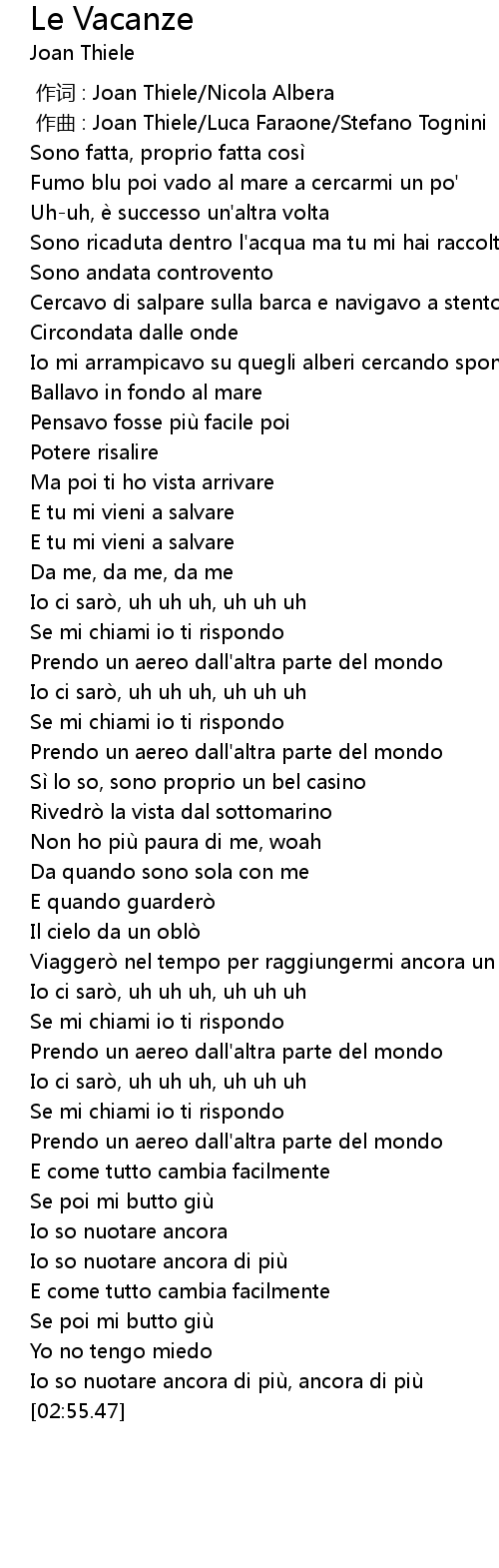 | [00:00.00] | 作词 : Joan Thiele/Nicola Albera |