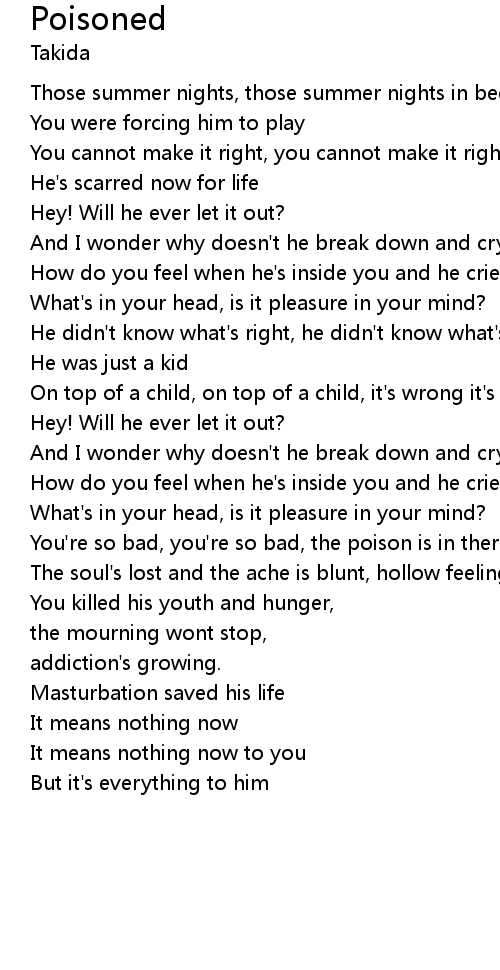 You're so bad, you're so bad, the poison is in there now and forever |