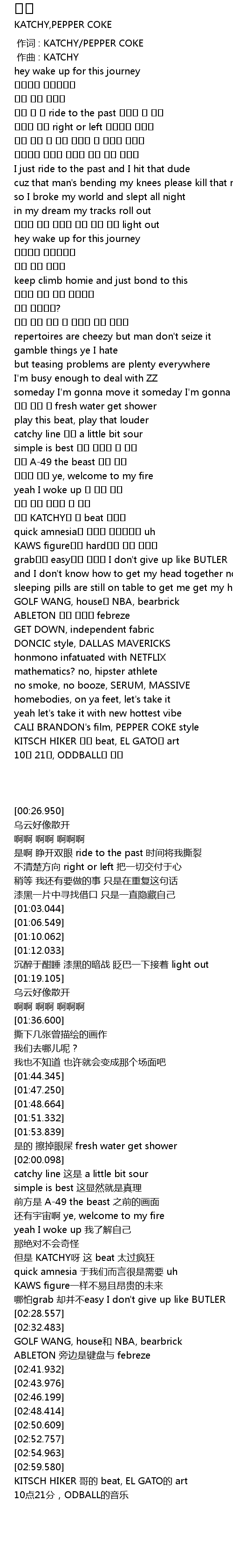 | [00:00.000] | 作词 : KATCHY/PEPPER COKE |