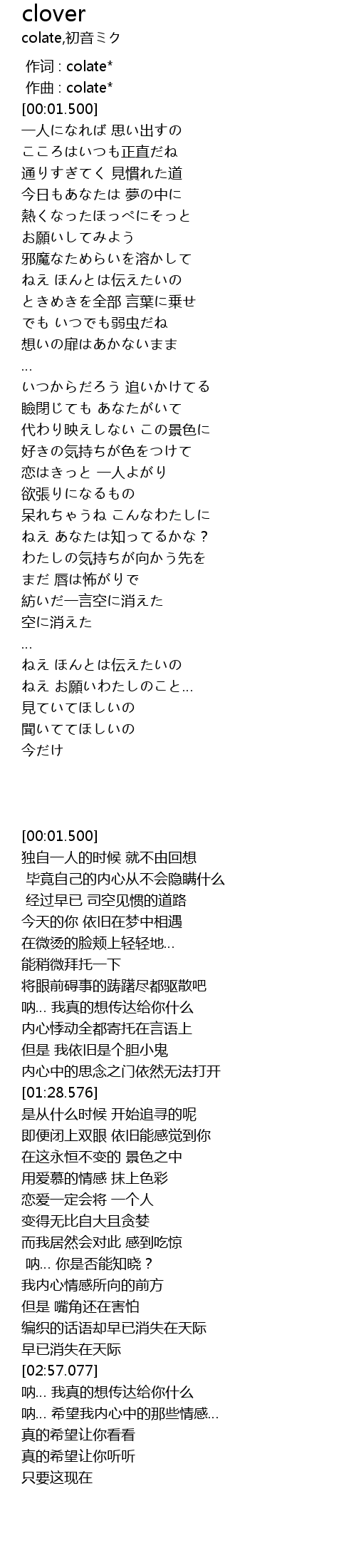 作词 : colate* |